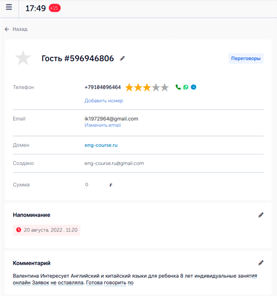 - После первых 50 контактов подсчет конверсии в успешный произведенный диалог и, в
