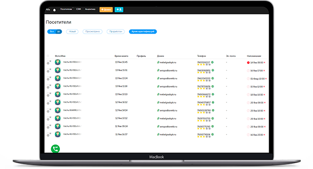 Система начинает определять посетителей буквально в день установки продукта. Это значит, что уже завтра вы сможете получать больше лидов, а значит и больше сделок!